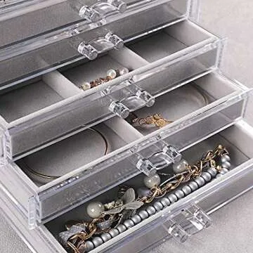 Frebeauty Extra Large Acrylic Jewelry Box for Women 5 Layers Clear Jewelry Organizer Velvet Earring Box with 5 Drawers Rings Display Case Necklaces Holder Tray for Women Girls (Grey)