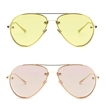 Show moreStep into the spotlight with Freckles Mark Oversized Aviator Sunglasses, the perfect blend of vintage charm and modern functionality. Designed with a classic pilot aviator silhouette, these sunglasses feature a double metal bridge and large, flat tinted lenses for a timeless look. The rimless design not only adds to their sleek appearance but also ensures a comfortable fit for all face shapes. Crafted from sturdy stainless steel and equipped with 2.2 mm thick HD lenses, these shades promise durability and clarity. Each lens is securely held by two bolts and nuts, marrying fashion with functionality. Whether you're driving, lounging at the beach, or attending a music festival, these sunglasses are your go-to accessory for making a statement while protecting your eyes from harmful UV rays.