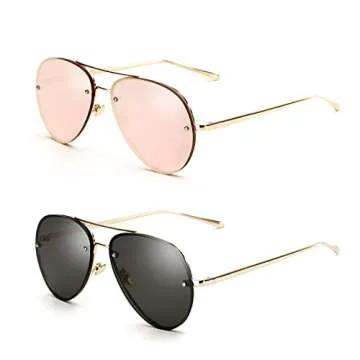 Show moreIntroducing the Freckles Mark Oversized Aviator Sunglasses, the perfect accessory that combines vintage charm with modern functionality. Designed for both men and women, these sunglasses boast a classic pilot aviator design characterized by a double metal bridge and large flat tinted lenses that come in an array of vibrant colors including reflective pink. The rimless design not only enhances your look but also provides a lightweight feel, ensuring comfort for all-day wear. Their sophisticated style instantly elevates any outfit, making them a go-to accessory for fashion-forward individuals.