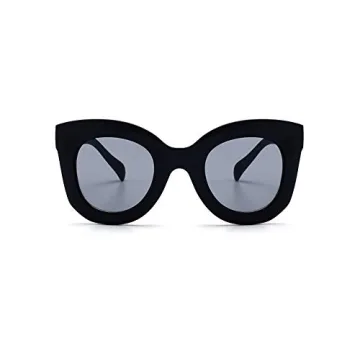 Freckles Mark Thick Fashion Butterfly Sunglasses for Women Trendy Round Cat Eye Sun Glasses (Matte Black, 45)