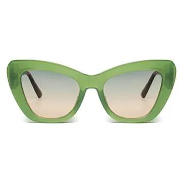 Freckles Mark Trendy Designer Sunglasses Womens Cute Fashion Square Cat Eye Sun Glasses (Green/Tortoise Shell)