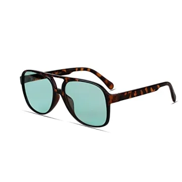 Freckles Mark Vintage Retro 70s Sunglasses for Women Men Classic Oversized Aviator Trendy Glasses (Green Tint/Tortoise, 60mm)