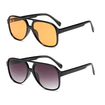 Freckles Mark Vintage Retro 70s Sunglasses for Women Men Classic Large Square Aviator Trendy Glasses (2P: Yellow & Black)