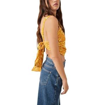 Free People All Tied Up Women’s Tank Top for Summer – Square Neckline – Strappy Sleeves – Tie-up Back Yellow Combo LG (Women's 12) One Size