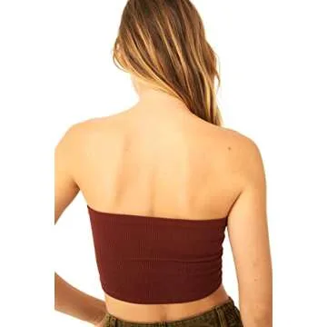 Free People Amelia Bandeau Bra for Women - Rayon-Spandex Blend Construction - Fine Ribbing - Stretch Fit Clove MD-LG (US Women's 8-14) One Size