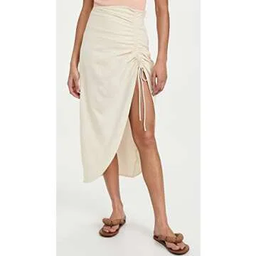 Free People Women's Natural Cerine Ruched Midi Skirt, Ivory, Off White, 12