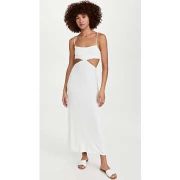 Show moreThe Free People Women's Piper Midi Dress in off white is the epitome of effortless elegance and style. Crafted from a lightweight jersey fabric, this beautiful dress features a gorgeous cutout at the back, adding a touch of flirtation to its sophisticated strappy silhouette. With its unlined design, it ensures a relaxed fit that’s perfect for both warm days and cool evenings. Slip it on for a casual outing or dress it up for a night out - this versatile piece is set to become a staple in your wardrobe.
