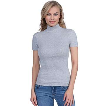 free spirit Basic Cotton Premium Quality Cotton Women's Turtleneck Short Sleeve T-Shirt. Proudly Made in Italy. (Large, Denim)