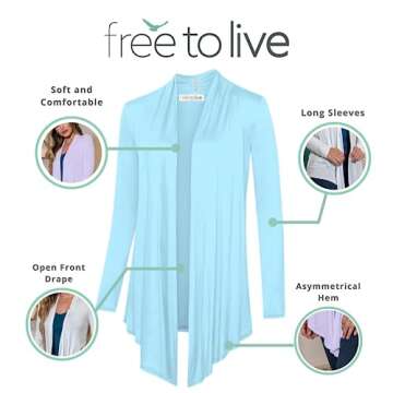 Free to Live 3 Pack Long Sleeve Cardigan for Women Open Front Dressy Casual Fall Draped Lightweight Sweaters Cover Up Shrugs