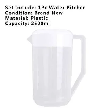 Freebily 2500ML Large Capacity Food Grade Plastic Measuring Water Pitcher Jug with Lid for Cold Water Ice Tea Juice Beer White One Size