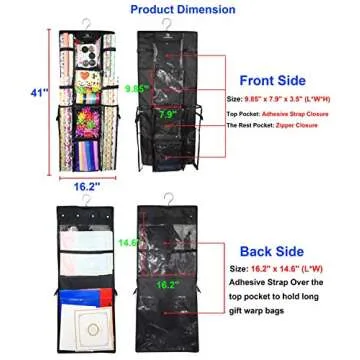 Show more If you're a passionate gift giver, then our Premium Gift Wrap Organizer is a must-have for your collection! Designed to accommodate a wide array of wrapping paper sizes and all necessary accessories, this ingenious storage solution will make your gift-wrapping process both efficient and enjoyable. Made from heavy-duty canvas and reinforced with strong stitching, it ensures durability while elegantly housing your treasures. The organizer boasts multiple large pockets for ribbons, gift tags, scissors, and more, making it your ultimate companion during festive seasons.