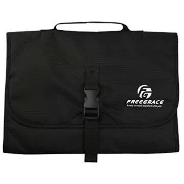 Freegrace Premium Hanging Toiletry Travel Bag - Cosmetic, Jewelry, Toiletry & Accessory Storage Organizer Bag, Large Size, Various Compartments (Black)