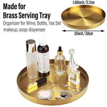 Show moreIf you're looking for an elegant solution to organize and display your cherished belongings, the FREELOVE Metal Round Decorative Tray is perfect for you! Crafted from food-grade stainless steel and beautifully plated with brass, this 12-inch round serving tray effortlessly combines functionality and style. Not only is it versatile enough for serving delicious treats at your next gathering, but it also makes an exquisite decorative piece for your home. With a brushed metal finish, it provides a luxurious touch that will elevate any setting, whether it's your kitchen, vanity counter, or bathroom.