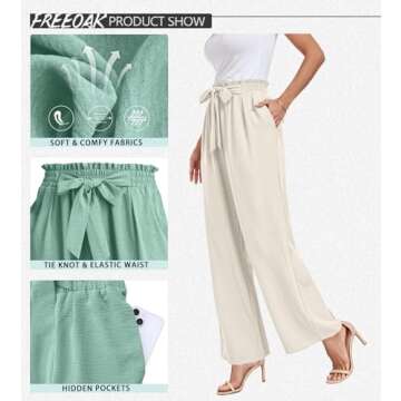 FREEOAK Women Wide Leg Pants Teacher Flowy Trousers Slacks Pajama Lounge Bottom Spring 2024 Business Palazzo Casual