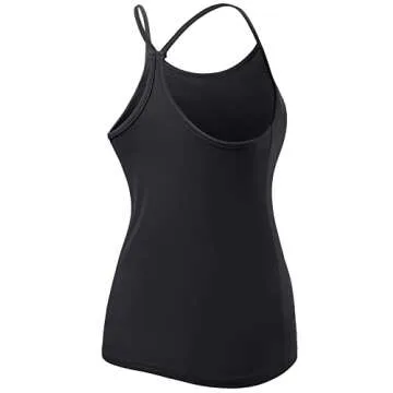 FREEYE Y Back Built in Shelf Bra Racerback Cami Yoga Workout Tank-Tops for Women,Sport Padded Spaghetti Straps Camisoles Sleeveless Compression Active-wear Athletic Clothing Tee Shirts X-Large Black