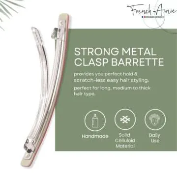 French Amie Long and Thin Rose Pink Large 4” Handmade Celluloid Automatic Sleek Hair Clip Barrette for Women and Girls (Rose Pink)