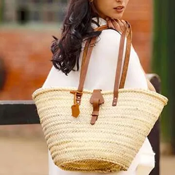 FRENCH BASKET straw bag with leather handles beach bag, straw bag, market basket, Moroccan Basket, Crossbody Bag, Summer Bag