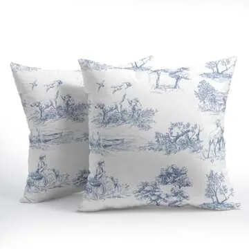 Show more Introducing the exquisite Blue Toile Pillow Covers from a renowned home decor brand, guaranteed to elevate your living space with their charming aesthetic. These covers are a blend of tradition and modern elegance, featuring a stunning Toile print that beautifully enhances any room. Crafted with high-quality fabric, these pillow covers are designed not only for beauty but for durability as well. Initially, you might notice their stiffness, but after a refreshing wash and tumble dry, they transform into a soft, cozy addition to your bedding. Imagine sinking into your bed, greeted by the soft touch and elegant design of these pillows; a perfect slice of comfort and style.
