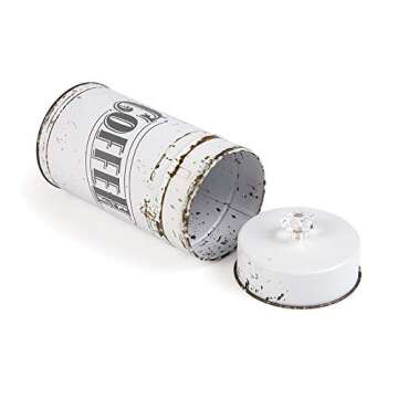 Made of high-quality tin complemented by a stylish clear plastic knob, these canisters are both sturdy and practical. Your baking essentials will find a cozy home in these charming containers. The vintage graphics in rust and bronze tones add a touch of elegance, enhancing any contemporary or traditional kitchen.