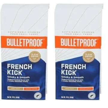 French Kick Ground Coffee Dark Roast, 12 Oz, Bulletproof Keto Friendly 100% Arabica Coffee, Certified Clean Coffee, Rainforest Alliance, Sourced from Guatemala, Colombia & Brazil (Pack of 2)