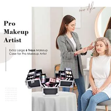 One of the key features is its large capacity, featuring an extendable cantilever with six trays that offer an organized solution for your makeup collection. Each tray comes with dividers to customize the space according to your items' sizes, ensuring everything has its slot to keep your essentials in check. The spacious bottom compartment provides additional room for larger tools and palettes, making it a truly versatile storage solution.