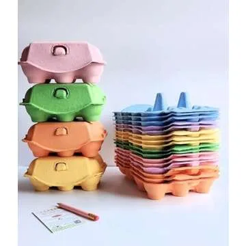 FRESH EGGS DAILY 18 Pack Colored Reusable Pulp Paper Cardboard 6-Cell Egg Cartons for Chicken Hen Eggs plus Carton Labels, Pencil and Egg Handling Tips
