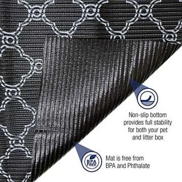 Show moreThe Fresh Kitty Durable XL Jumbo Foam Litter Box Mat from Royal Pet is the ultimate solution for pet owners who struggle with maintaining a clean and tidy home. This mat, measuring a generous 40" x 25" in a stylish black and white quatrefoil design, not only complements your decor beautifully but also provides an effective barrier against litter scatter. Made from high-quality foam, this mat is both soft and durable, ensuring that it stays in place no matter how active your furball is. It is designed to catch loose litter and prevent it from being tracked throughout your house, making it a must-have for all cat parents!
