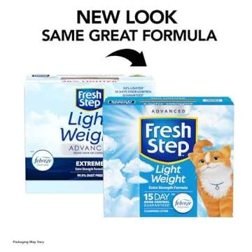 Show moreIntroducing the Fresh Step Light Weight Advanced Extreme Cat Litter with Febreze Freshness, a revolutionary addition to your cat care essentials! This clever cat litter, presented in two 12.5 lb. boxes totaling 25 lbs., offers a combination of powerful clumping capabilities and superior odor control performance, making it a must-have for cat owners seeking cleanliness and convenience. Designed with the modern pet parent in mind, this litter is 30% lighter than traditional options, ensuring effortless lifting, pouring, and scooping, all while delivering the freshness you can only expect from Febreze.
