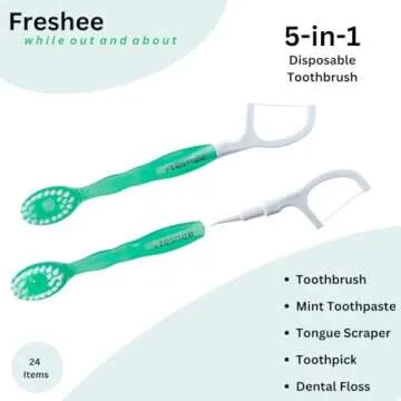 Freshee 5 in 1 Disposable Mini Toothbrush | Travel Size Oral Care Essentials