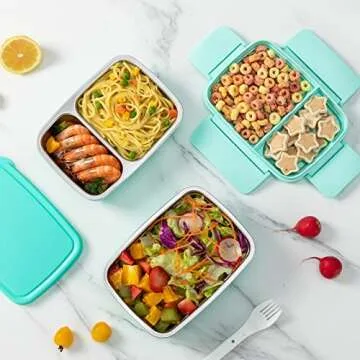 With its leak-proof sealing gasket and secure four-side locking mechanism, you can trust that your meals will remain fresh and intact, free from leaks and unpleasant spills in your bag. This makes it an excellent choice for commuting, outdoor activities, or any scenario where you want your food to stay sealed. Moreover, the bento box is cleverly designed to be microwave, freezer, and dishwasher safe, although care should be taken when heating food in the stainless steel compartment.