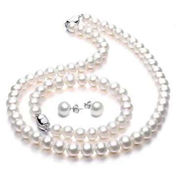 The pearl set includes an 18-inch pearl necklace, a 7.5-8 inch pearl bracelet, and 10-10.5mm pearl stud earrings.