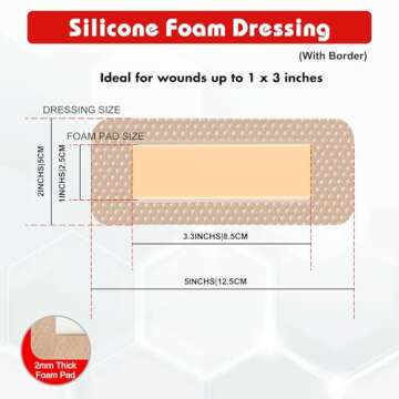 Introducing the FRESINIDER 2"x5" Silicone Foam Wound Dressing, the ultimate solution for all your wound care needs. With a pack of 10 waterproof adhesive bandages, each designed for optimal performance, these dressings feature a unique 5-layer construction that ensures exceptional protection and healing. The outer layer is made from breathable PU material which not only keeps your wound covered but also allows for the necessary passage of oxygen and water vapors, creating a healthy environment...