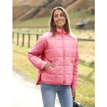 Freyhem Quilted Puffer Jacket Women Lightweight Short Zip Up Padded Coat with Pockets(Pink-M)