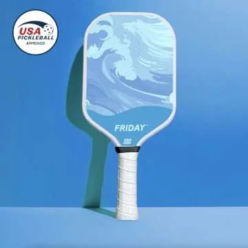 Friday Pickleball Paddle, USA Pickleball Approved, Durable Carbon Fiber, Thermoformed Unibody Design, Honeycomb Core, Gritty Surface for Spin (Blue Sky, 1 Paddle)