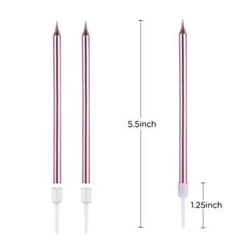 Frienda Metallic Birthday Cake Candles in Holders Long Thin Birthday Candles Cupcake Candles Wedding Party Cake Decorations (Pink)