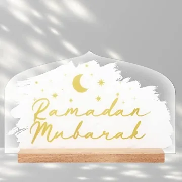 Transform your celebrations with the Frienda Ramadan Eid Mubarak Decorations—a stunning piece designed to elevate your festive decor! Perfectly crafted from high-quality acrylic, this Ramadan table centerpiece features a beautiful "Ramadan Mubarak" inscription embellished with elegant moon and star motifs, adding a touch of sophistication to your holiday gatherings. Measuring approximately 18 x 11 cm (7 x 4.3 inches), this lightweight sign is not only eye-catching but also the ideal size...
