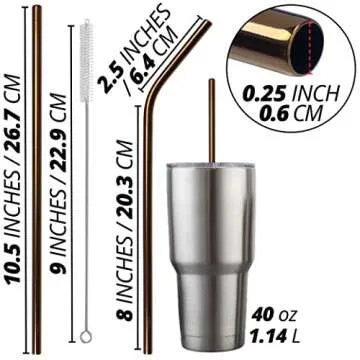 Friendly Straw 10 Pack 10.5" x .25" Reusable Metal Straws, 5 Straight 5 Elbow Stainless Steel Drinking Straws With Free Brushes and Pouch (Copper Finish)