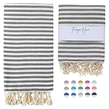 Fringe Home Turkish Towel - Versatile, Lightweight 100% Cotton, Grey Strip