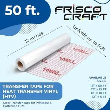 Frisco Craft Transfer Tape for Heat Transfer Vinyl - Iron on Clear Tape for Printable and Patterned Htv, Indoor & Outdoor Adhesive Vinyl - Reusable Up to 5 Times, High Tack (12" x 50 ft)