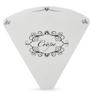 Show more Introducing the Friteshop Inc. Perforated French Crepe Holders, the ultimate solution for serving crepes with flair and ease! Perfectly designed for both professional catering services and personal gatherings, these holders enhance any dining experience by combining functionality with aesthetic appeal. Measuring a robust 7 inches wide and 7 inches tall, they are crafted from durable 250-gram thick cardboard that can handle the weight and moisture of crepes, ensuring they maintain their shape. Designed thoughtfully for convenience, they feature a perforated front and bendable back with an easy tear notch, allowing your guests to enjoy their favorite crepes effortlessly. Whether you’re serving mouth-watering sweet or savory variations, these crepe holders bring sophistication to every bite.
