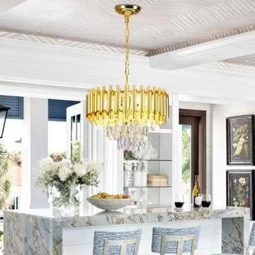 FRIXCHUR 16'' Modern Crystal Chandelier Pendant Light 3-Tier Gold Chandelier Light Fixture Raindrop Modern Chandelier for Dining Room Kitchen Island Living Room Foyer