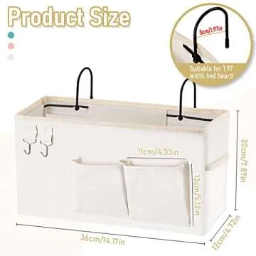 ... Show more Introducing the perfect solution for those who adore simplicity and functionality—the Bedside Organizer. This innovative caddy is crafted from durable cotton and sturdy metal, ensuring it not only meets your storage needs but also lasts through the years. With dimensions of 14.17 x 4.72 x 7.87 inches, this bedside storage unit is specially designed for smaller living spaces, making it ideal for tiny houses, narrow apartments, guest rooms, bunk beds, or any skinny bedrooms.