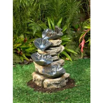 Frog and Four Lily Pad Rustic Outdoor Floor Water Fountain 21" High with LED Light Stacked Rock Cascading Decor for Garden Patio Backyard Deck Home Lawn Porch House Exterior - John Timberland