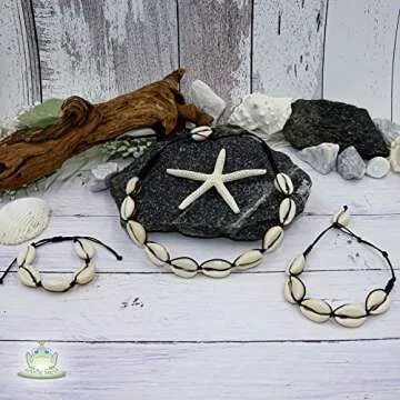 FROG SAC Cowrie Shell Necklace with Matching Black Seashell Anklet and Bracelet, VSCO Accessories Set for Adults, Aesthetic Beach Jewelry for Women