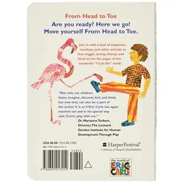 Show moreIntroduce your little ones to the wonderful world of movement with the From Head to Toe Board Book! This enchanting book, perfect for toddlers, invites children to engage with their bodies while learning about different animals through interactive motions. Made with durable board pages, it can withstand even the most enthusiastic readers. Vibrant illustrations make each page lively and appealing, ensuring a fun learning experience that promotes both reading and physical activity. Whether it's clapping hands like a seal or stomping feet like a elephant, this book is designed for loads of giggles and joy!