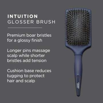 Fromm Intuition Glosser Smooth & Glossy Boar Bristle Paddle Brush, Detangles, Smoothes, and Massages Scalp to Distribute Oils for Shiny Healthy Hair, Navy Blue