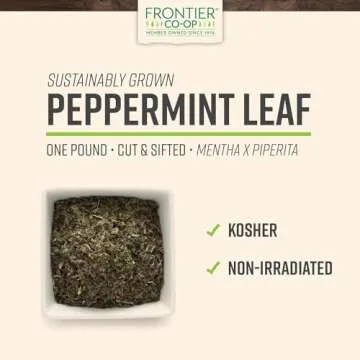 Show moreIntroducing the delightful and invigorating Frontier Peppermint Leaf, a must-have for anyone who adores the refreshing taste and aroma of peppermint. Cut and sifted with great care, this non-irradiated product maintains the leaf's natural essence and vibrancy, ensuring every use is filled with flavor and therapeutic benefits. Sourced from the trusted Frontier Co-op, known for its commitment to sustainability and responsible sourcing, each leaf carries the pride of a cooperative dedicated to people and the planet.