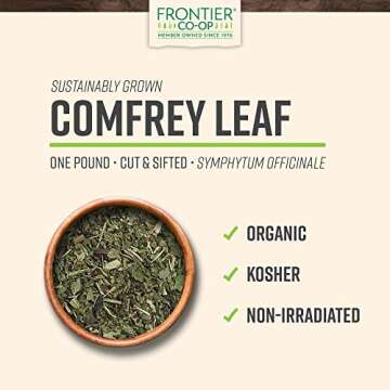 Frontier Co-op Dried Comfrey Leaf, 1lb Bulk Bag, Cut & Sifted - Organic & Natural Comfrey Herb, Kosher - For Lotions, Creams, and Hair Rinses