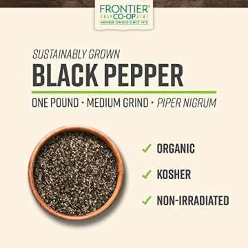When compared to competing brands, Frontier Co-op Organic Medium Ground Black Pepper stands out due to its robust flavor profile and organic certification. Many conventional brands use irradiation, which can diminish the spice's natural flavors and health benefits. Our focus on sustainable sourcing and community engagement further enhances our value proposition, making our product not only superior in taste but also in ethical responsibility. Choose Frontier for a more flavorful and conscientious culinary experience.