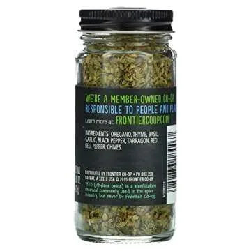 Show moreIntroduce your culinary creativity with the exquisite Frontier Herb Italy Blend Spice. This salt-free blend is an essential addition to your pantry, expertly crafted to enhance the flavors of your favorite Italian dishes without overpowering them. Packaged in a convenient 0.8-ounce jar, this spice blend combines a rich assortment of herbs synonymous with traditional Italian cuisine, bringing home the taste of the Mediterranean. Each jar measures 5.842 cm L x 7.111 cm W x 19.304 cm H and weighs just 0.158 kg, making it a perfect fit for any kitchen shelf or spice rack, while also being easily transportable for cooking on the go.